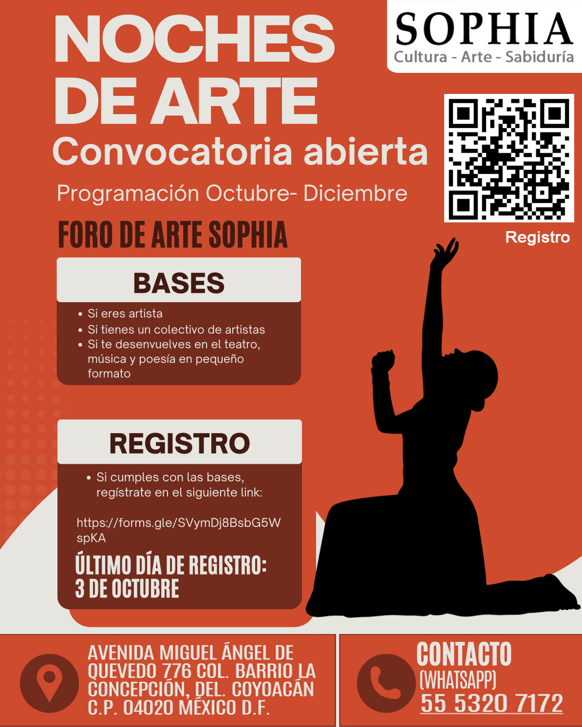 El Foro de Arte Sophia es un espacio cultural independiente dedicado a la promoción, exhibición, difusión y reflexión en torno a las artes escénicas. Nace como una idea para darles espacio y voz a los artistas, en la búsqueda de crear un espacio abierto al diálogo y las artes.